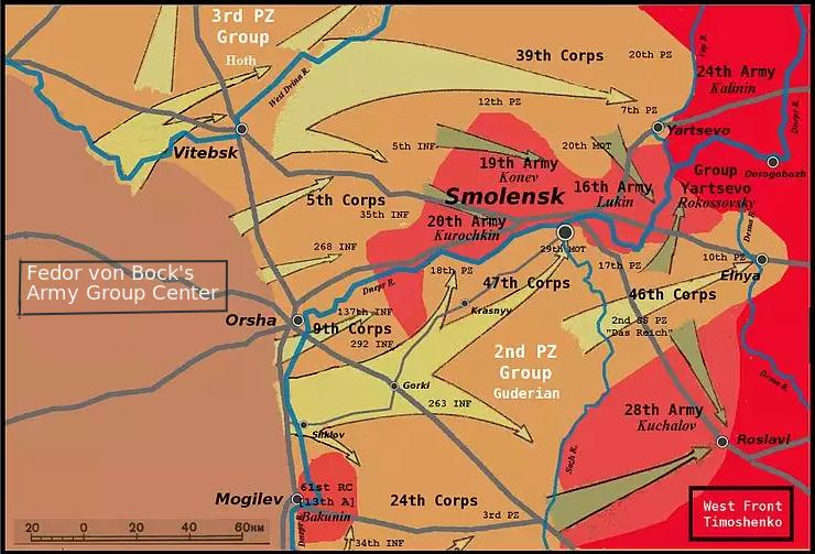 Below, Map of the Smolensk encirclement